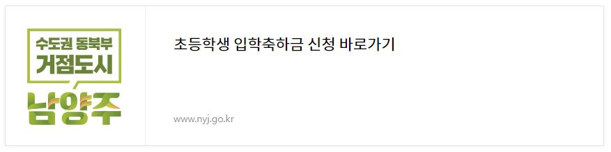 여러분, 혹시 남양주에서 시행하는 초등학생 입학축하금 지원사업을 시행하고 있다는 것을 아시나요? 다른 타 지역에서도 시행하는지는 알아봐야겠지만, 교육비 부담 경감과 지역 경제 활성화를 위해 2023년 초등학교 1학년을 대상으로 입학축하금(지원금)을 지급하고 있습니다. 지급 기간이 있으니, 아직 신청 하지 못한 분들은 잊지말고 꼭 신청 하시면 좋을 것 같습니다.