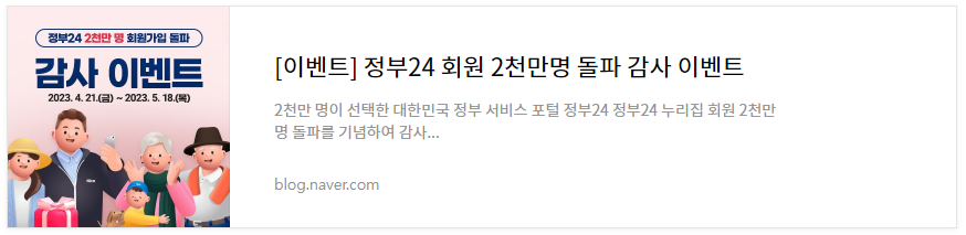 또한, 정부24 영상 콘텐츠 관련 공모전도 함께 이벤트 할 수 있으니 참고 하시길 바랍니다. 대한민국 누구나 참여할 수 있고 고, 수상자에게 모바일 전자제품을 시상품으로 전달 한다고 하니, 관심 있는 분들은 참여 해도 좋을 것 같습니다.