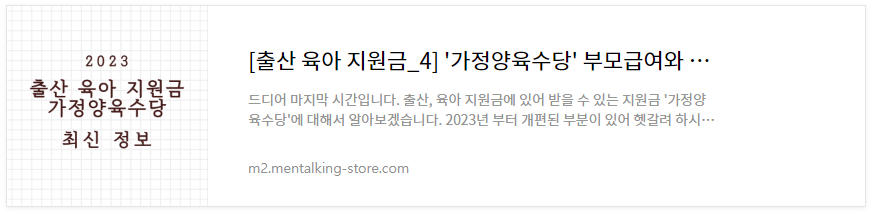 | [출산 육아 지원금 4] '가정양육수당' 중복가능? (0) | 2023.04.30 |