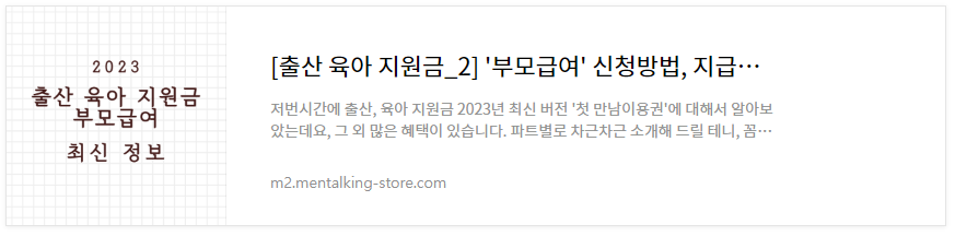 | [출산 육아 지원금 2] '부모급여' 총 정리 (0) | 2023.04.29 |