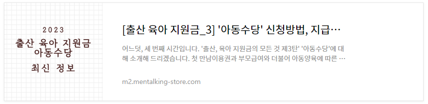 | [출산 육아 지원금 3] '아동수당' 최대 960만원? (0) | 2023.04.30 |
