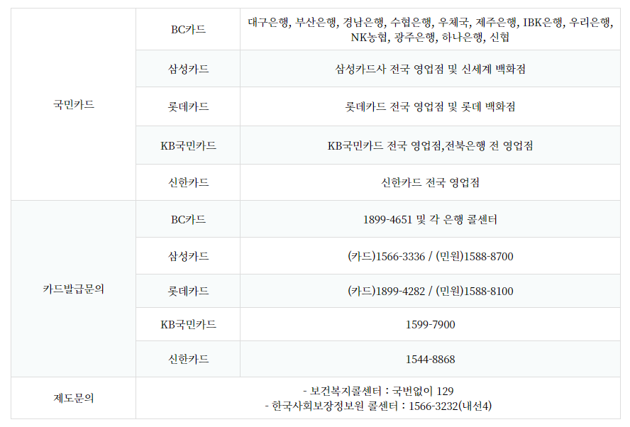 - 지급방식 : 국민행복카드 이용권(포인트) 지급을 원칙으로 하되, 부득이한 경우 예외를 인정